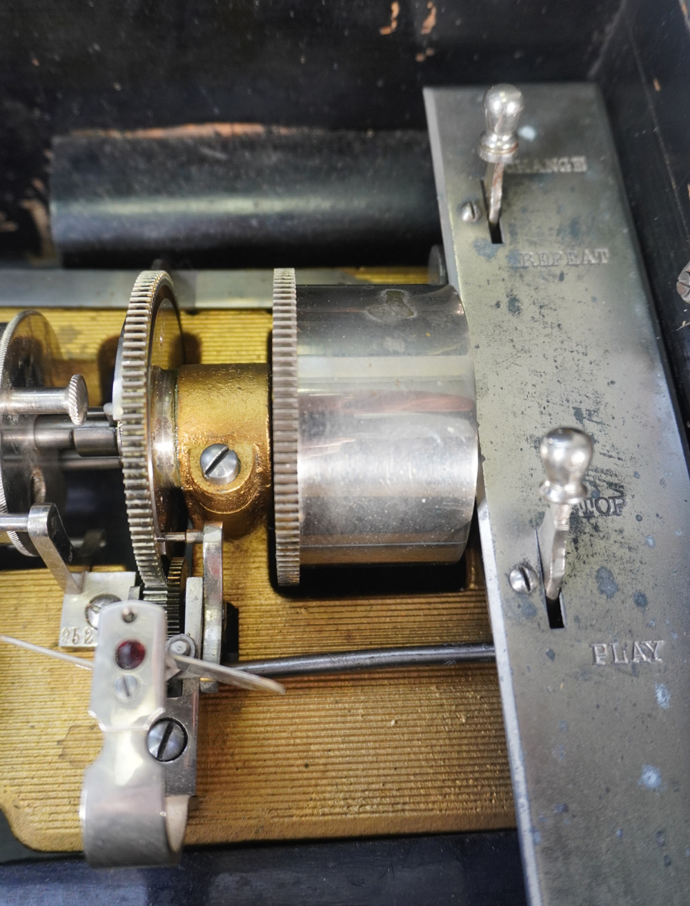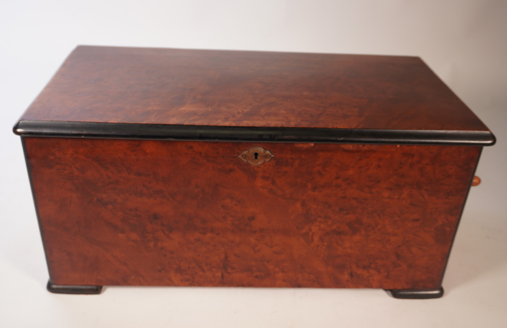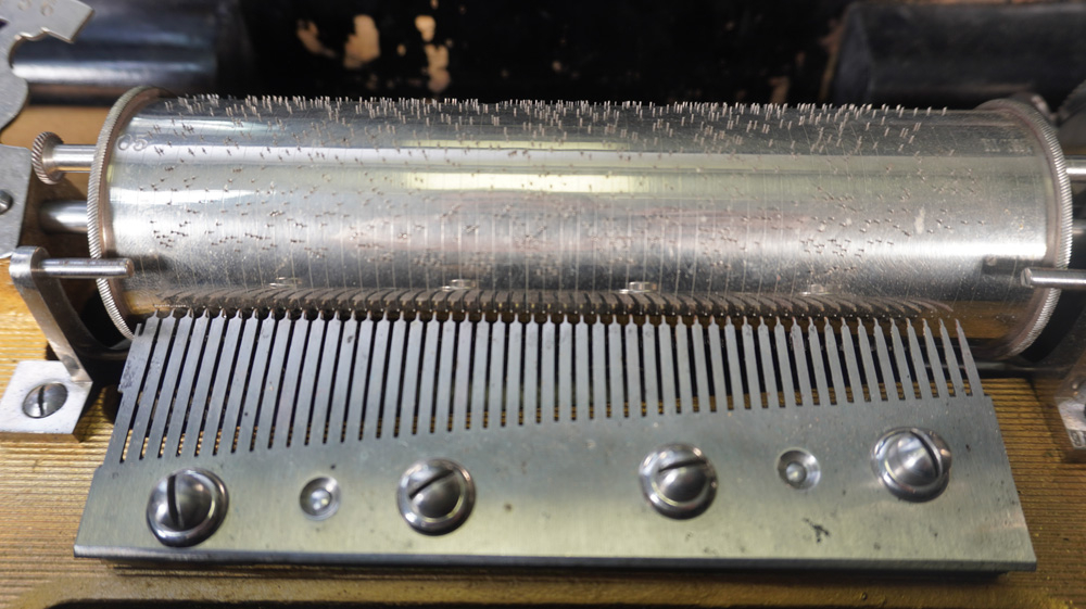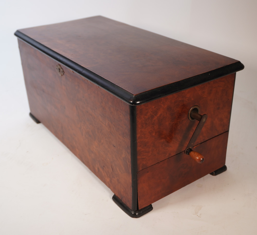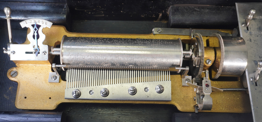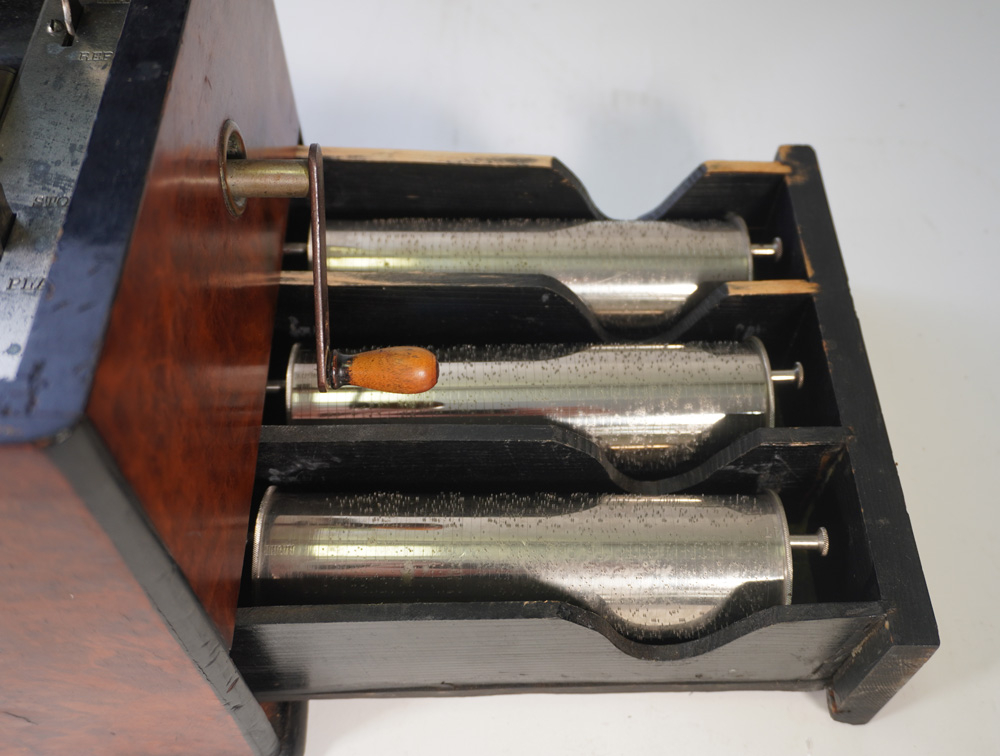 Aangeboden wordt een antieke cilinderspeeldoos met maar liefst 7 cilinders met elk 6 Melodieën. Gemaakt in Zwitserland rond 1880. Het geheel is in een mooie originele staat en functioneert prima. De cilinders zijn gemakkelijk te verwisselen. De kam is compleet dus geen tanden die missen. De afmetingen van deze bijzondere speeldoos zijn : 50 x 25 x 27 cm. De extra cilinders zijn verdeeld over 2 lades aan linker en rechterkant. De cilinders hebben een lengte van 17cm.